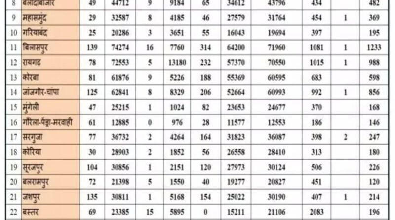 कोरोना आँकड़े: कोरबा में आज 80, वहीं प्रदेश में कुल 2493 नए संक्रमित, 19 मौत, देखें सूची