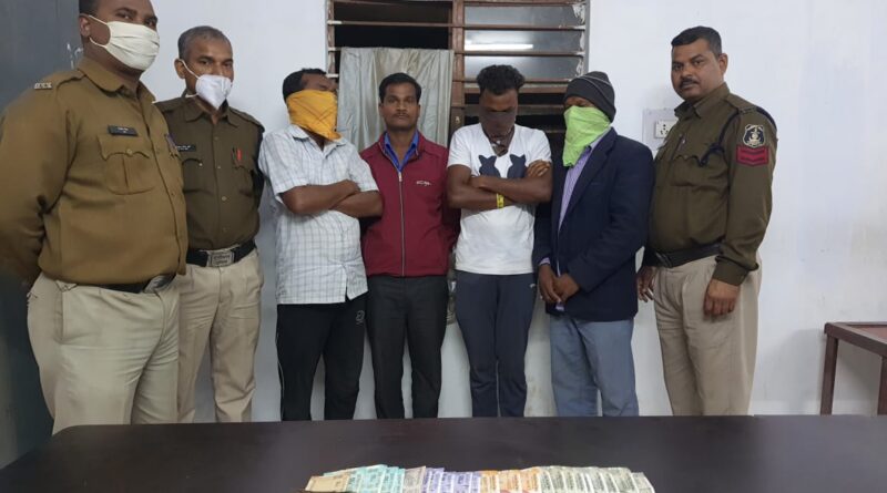 कोरबा(CGNEWS365.COM)/ 30 जनवरी 2022- ग्राम देवरमाल, थाना उरगा के खेत के पेड़ में जरिए मुखबिर जुआ खेलने की सूचना मिलने