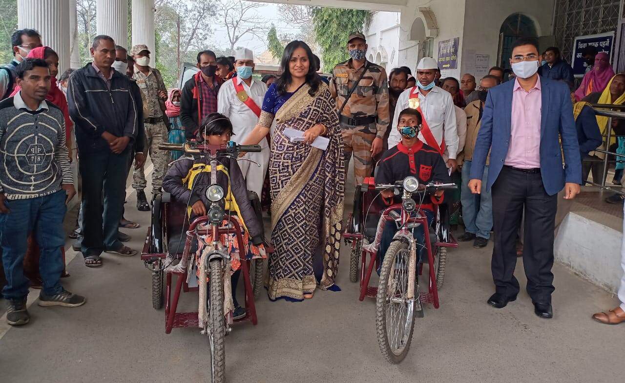 इन दिव्यांगों को ट्राइसाईकिल चलाने के लिए मेहनत भी नहीं करनी पड़ेगी। कलेक्टर रानू साहू ने आज कलेक्टोरेट परिसर में दिव्यांग रिया कैवर्त, सुरेश सिंह और श्याम लाल टंडन को अलग-अलग बैट्री चलित ट्राईसाइकिलें प्रदान की।