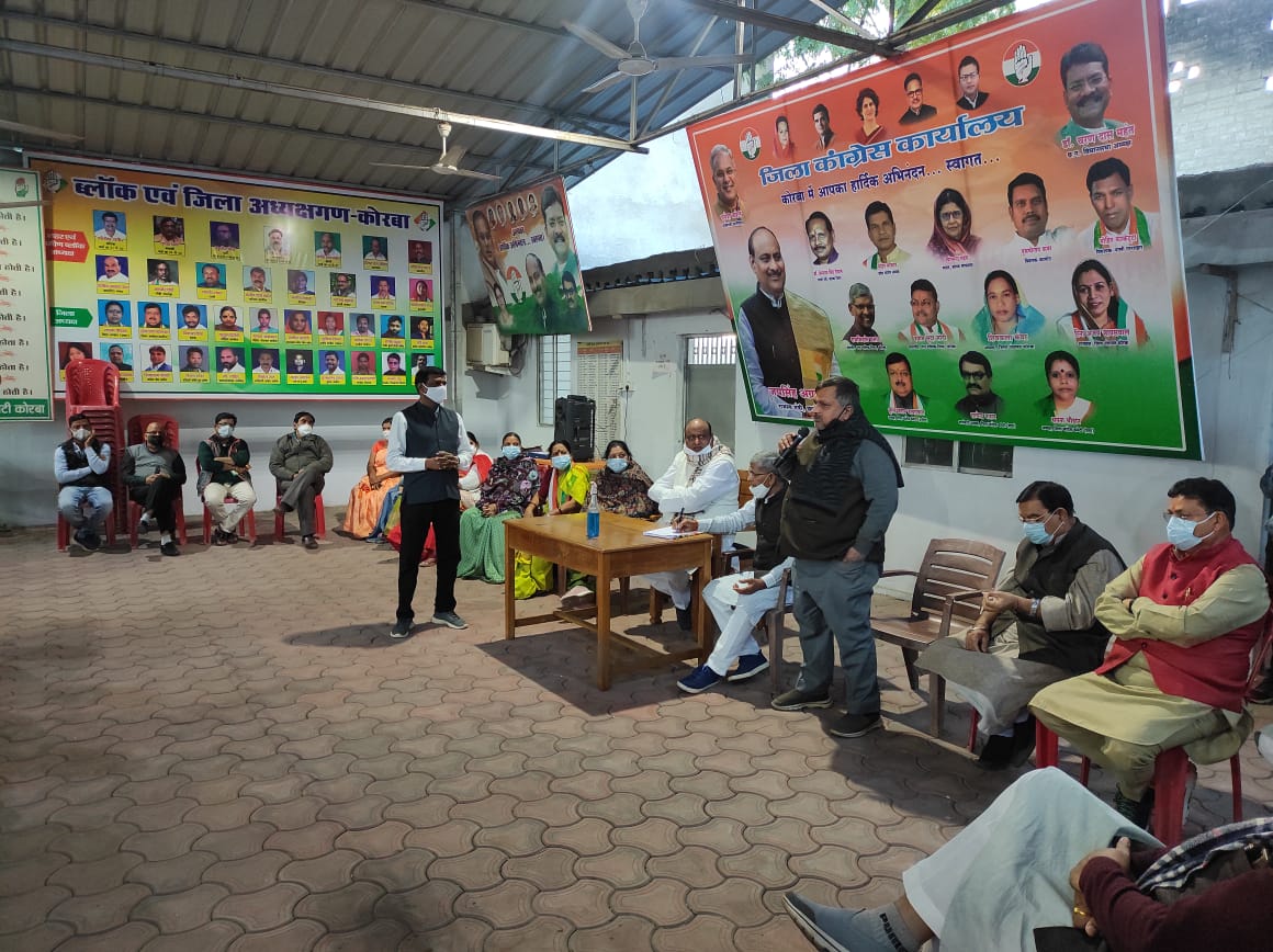 कोरबा विधायक जयसिंह अग्रवाल ने कहा कि कोरबा विधानसभा क्षेत्र अंतर्गत 59 वार्डों में वार्ड कमेटी तथा 243 मतदान, भाग संख्या में बुथ कमेटी को सक्रिय कार्यकर्ताओं के नाम से पुरा करना है। वहीं वरिष्ठ एवं प्रभावशाली व्यक्तियों को जोन एवं ब्लॉक कमेटी में शामिल करने के निर्देश दिये। उन्होने आगे कहा कि कांग्रेस सदस्यता अभियान के तहत सदस्य बनाए जाने की आवश्यकता है।