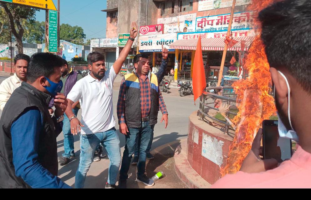 कोरबा(CGNEWS365.COM)/ 21 जनवरी 2022- प्रदेश के मुख्यमंत्री भूपेश बघेल पर उत्तर प्रदेश के नोएडा में हुई एफआईआर के विरोध में युवा कांग्रेस जिलाध्यक्ष नितिन चौरसिया के उपस्थिति एवं युवा कांग्रेस जिला उपाध्यक्ष मधुसूदन दास के नेतृत्व में शहर के कोसाबाड़ी चौक में युवा कांग्रेस कार्यकर्ताओ द्वारा उत्तर प्रदेश के मुख्यमंत्री योगी आदित्यनाथ का पुतला फूंका गया। इस दौरान युवा कांग्रेस कार्यकर्ताओ द्वारा उत्तर प्रदेश के मुख्यमंत्री योगी आदित्यनाथ व प्रधानमंत्री नरेंद्र मोदी के खिलाफ जमकर नारेबाजी की गई।