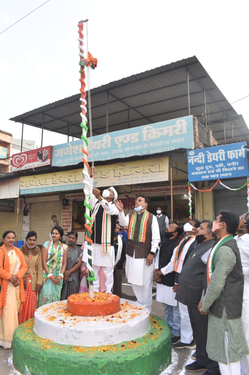 कोरबा(CGNEWS365.COM)/ 28 जनवरी 2022- जिला कांग्रेस कमेटी कोरबा के तत्वाधान में 26 जनवरी को गांधी चौक कोरबा में गणतंत्र दिवस मनाया गया है। 73 वीं गणतंत्र दिवस के अवसर पर महापौर राजकिशोर प्रसाद द्वारा ध्वजारोहण किया गया तथा प्रदेश कांग्रेस अध्यक्ष के संदेश का वाचन किया।