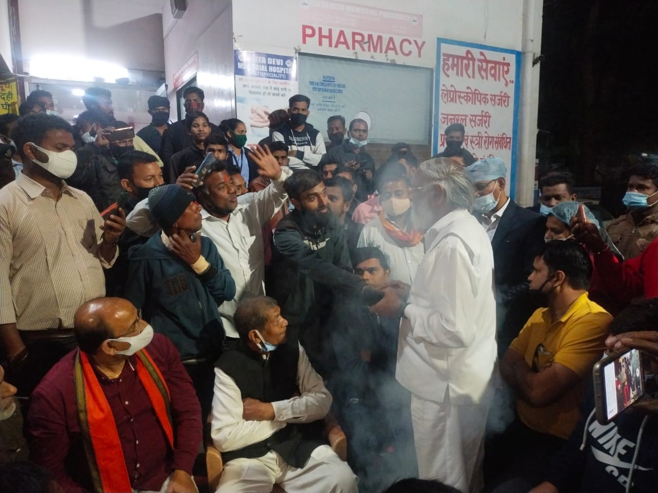 कोरबा(CGNEWS365.COM)/ 12 फरवरी 2022-गीतादेवी मेमोरियल अस्पताल में पहाड़ी कोरवा महिला की मौत के मामले में कार्यवाई की मांग को लेकर छत्तीसगढ़ के पूर्व गृहमंत्री व रामपुर विधायक ननकीराम कंवर अस्पताल से सामने सैकड़ों समर्थकों के साथ धरने पर बैठ गए। कड़कड़ाती ठंड में अलाव जलाकर धरने पर बैठे पूर्व गृहमंत्री महिला के इलाज में लापरवाही बरतने वाले डॉक्टर व गीता देवी मेमोरियल अस्पताल प्रबंधन के खिलाफ एफआईआर की मांग कर रहे। 6 घंटे धरना प्रदर्शन के बाद डॉक्टर सहित तीन लोगों पर एफआईआर दर्ज किया गया जिसके बाद प्रदर्शन समाप्त हुआ. मामले में जाँच पूरी होने के बाद और भी गिरफ्तारी होने की बात कही जा रही है.