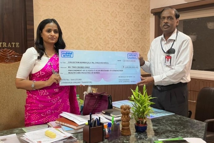 100 बेड हॉस्पिटल में सीटी स्कैन मशीन के लिए एनटीपीसी ने दिया 2 करोड रुपए का चेक
